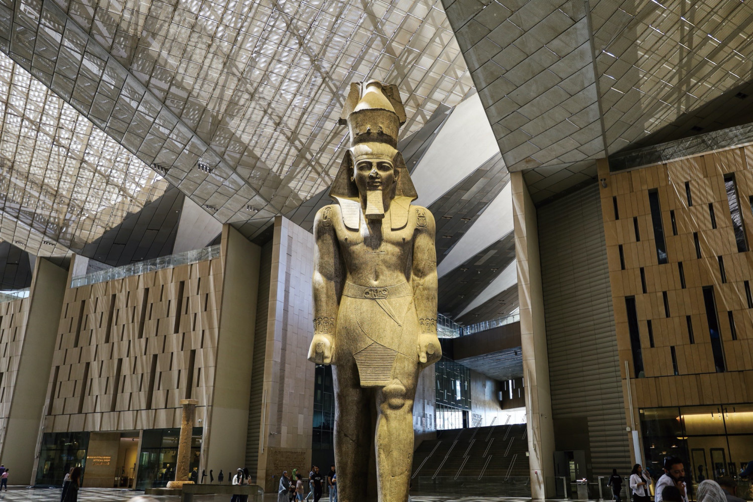 the museum are infused with natural light, including the Grand Hall where visitors can marvel at the colossal statue of Ramses II. From the windows at the top of the Grand Stairs, a stunning view of the Giza pyramids awaits. GEM also houses conservation laboratories, a children’s museum and a space where visitors can explore the story behind the origins of the pyramids through immersive technology.