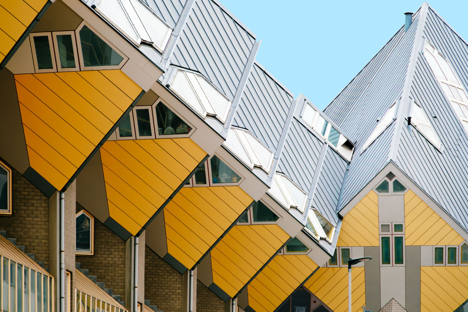 Rotterdam’s cube houses are also a poignant illustration of how the city’s focus on experimentation transcends mere design. Walking among these yellow cubes, which are elevated from the ground and tilted at a 45-degree angle, you may be astonished to learn that people actually live here. Flowerpots soak in the sunlight and lights flicker on at dusk. One of the houses is a public exhibition space offering a view of the interior. The leaning walls necessitate arranging furniture in completely unexpected ways. When people say that Rotterdam is a city that brings experimen¬tation into everyday life, they are likely referring to architectural marvels such as this.