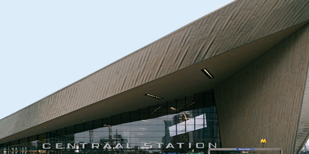 When strolling along the canals near Amsterdam Central Station, your pace naturally slows. Bicycles zip by over narrow stone bridges, while 17th century buildings are reflected on the serene surface of the water. But stand instead on the plaza outside Rotterdam Central Station, and your gaze darts in all directions. The paths leading away from the station’s imposing, angular roof seem to invite travelers to go wherever they wish, while buildings in the distance rise at different angles. These two Dutch cities each offer a different way of engaging with time.