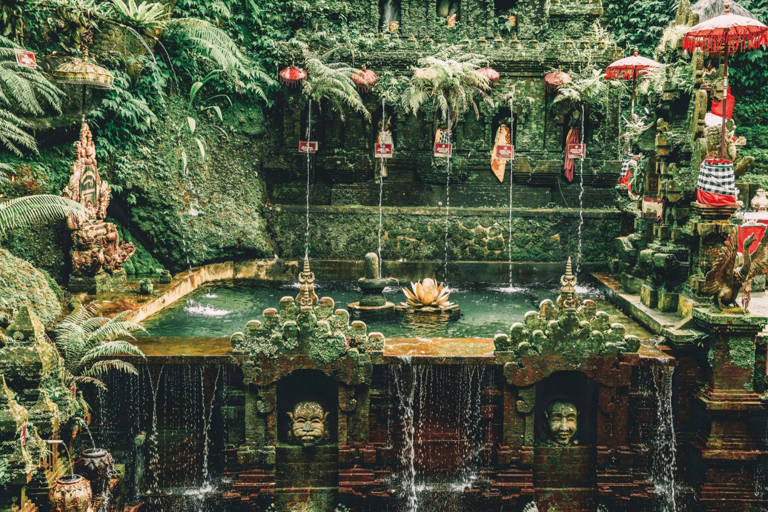 Melukat is a sacred Balinese water purification ceremony practiced to wash away sorrow and negative energy from both body and mind. Near Ubud, Taman Pecampuhan Sala Temple in Bangli is regarded as a significant site for this ritual. Hidden within a canyon where two rivers meet, the purification journey involves descending stone steps, passing through a narrow canyon, and arriving at a waterfall where the water is believed to bless those who enter. Visitors are advised to avoid periods of heavy rain, as water levels can rise quickly.