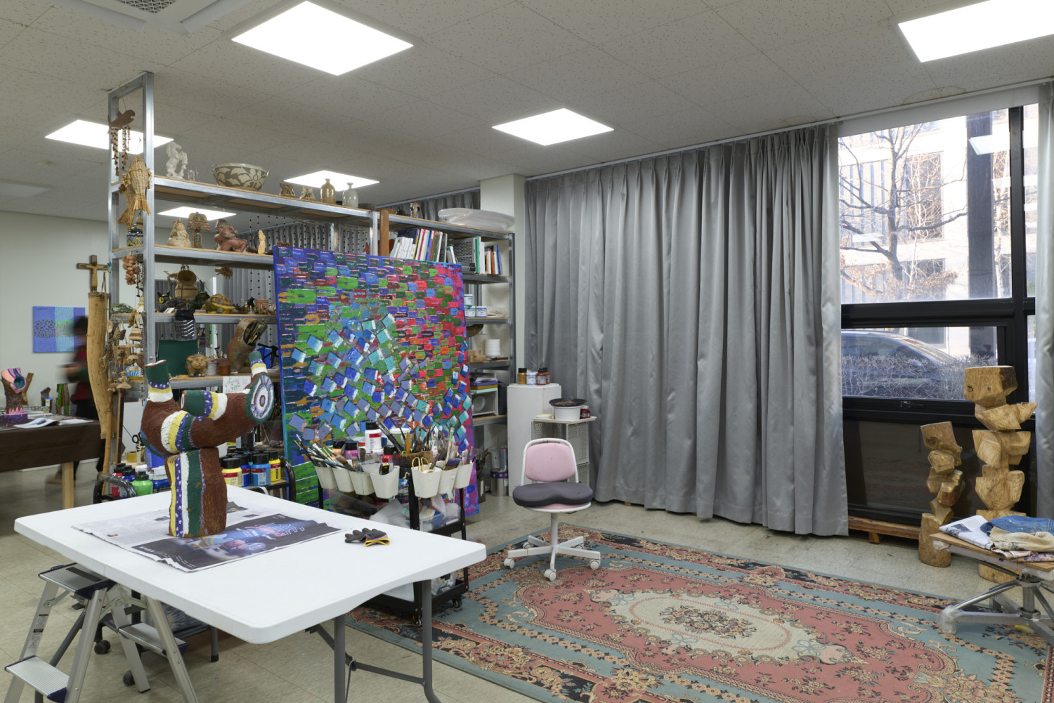 The concept she defines as hap-i-hap-il-bun-i-bun-il (Two Become One, One Divides into Two) — the idea that the self and material meet to become one, and then divide again to create new relationships — is embodied in the very act of carving away wood and carving away mass. More recently, Kim has found herself deeply immersed in painting. If sculpture is a work that moves out toward space, painting is closer to the act of capturing the density and trace of a single moment. For Kim, artistic creation is life itself, the lifeblood that sustains her. The message she leaves us with is simple and clear: Whatever you do, do it with your entire being. This is a story not just about art, but about an attitude toward living.