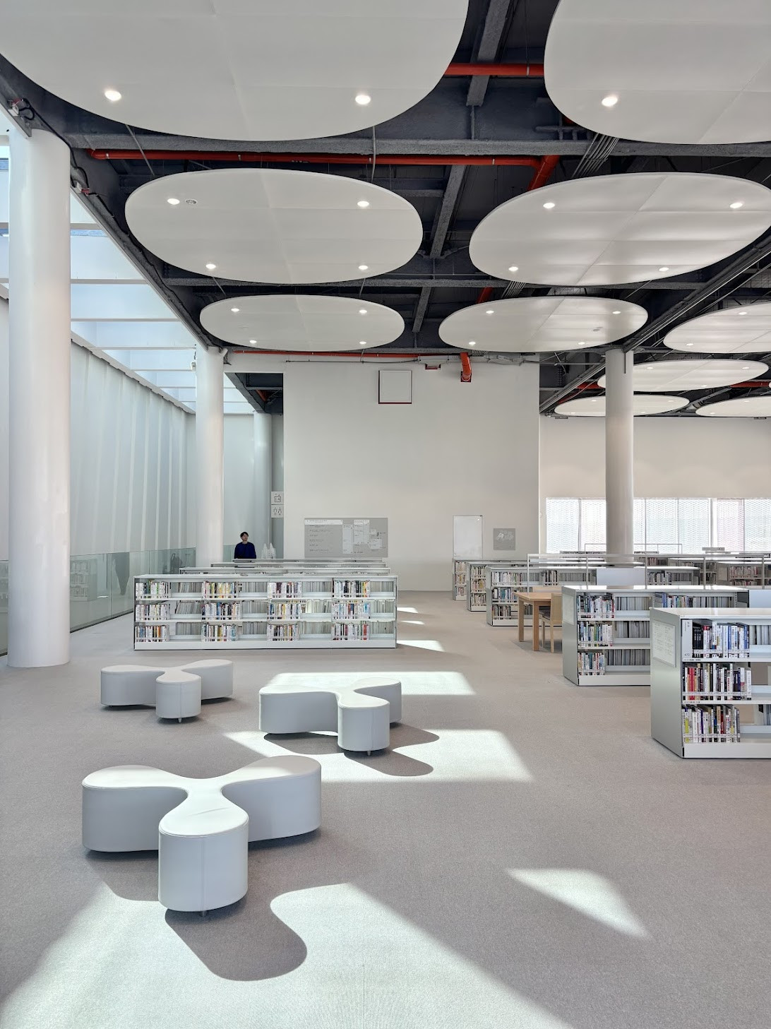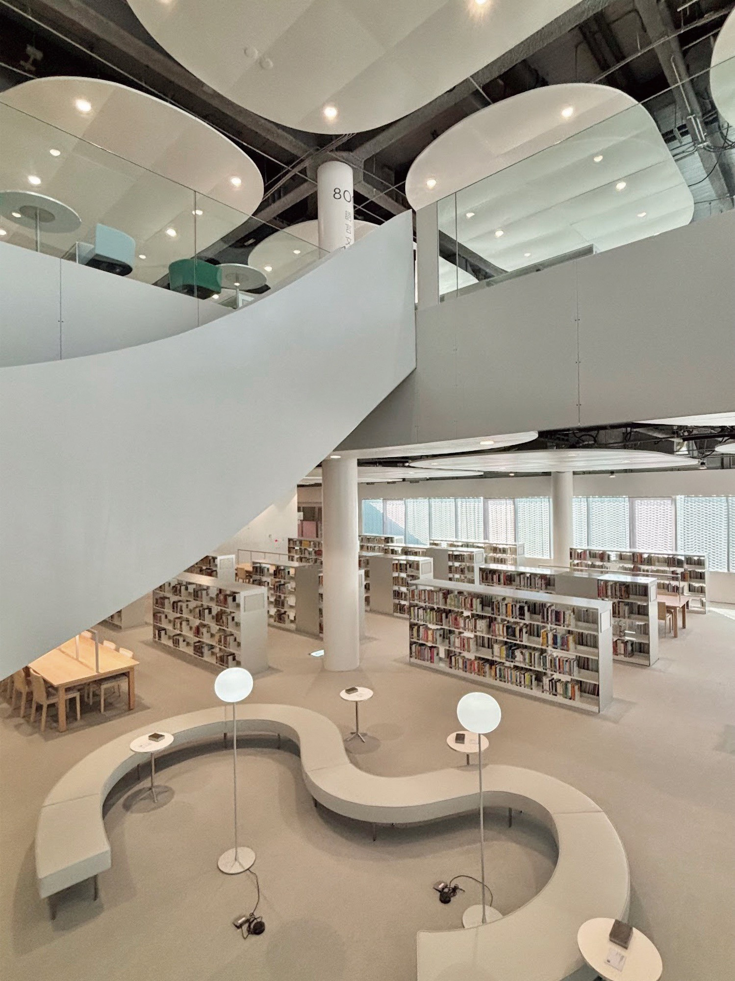 The Taichung Public Library welcomes visitors through its own ground-floor entrance, while remaining closely connected to the museum via a series of elevated bridges and walkways. Spanning four of the eight structures, it houses a collection of 460,000 physical books, part of nearly one million items in total, and offers dedicated zones for children and teenagers, creating inviting spaces for all ages. Between the museum and the library lies the “Cultural Forest,” a rooftop sanctuary that opens onto the park’s greenery. Here, the boundaries between art and literature dissolve. The Museumbrary serves as a reminder of the value of tangible, shared experiences amid an increasingly digital world.