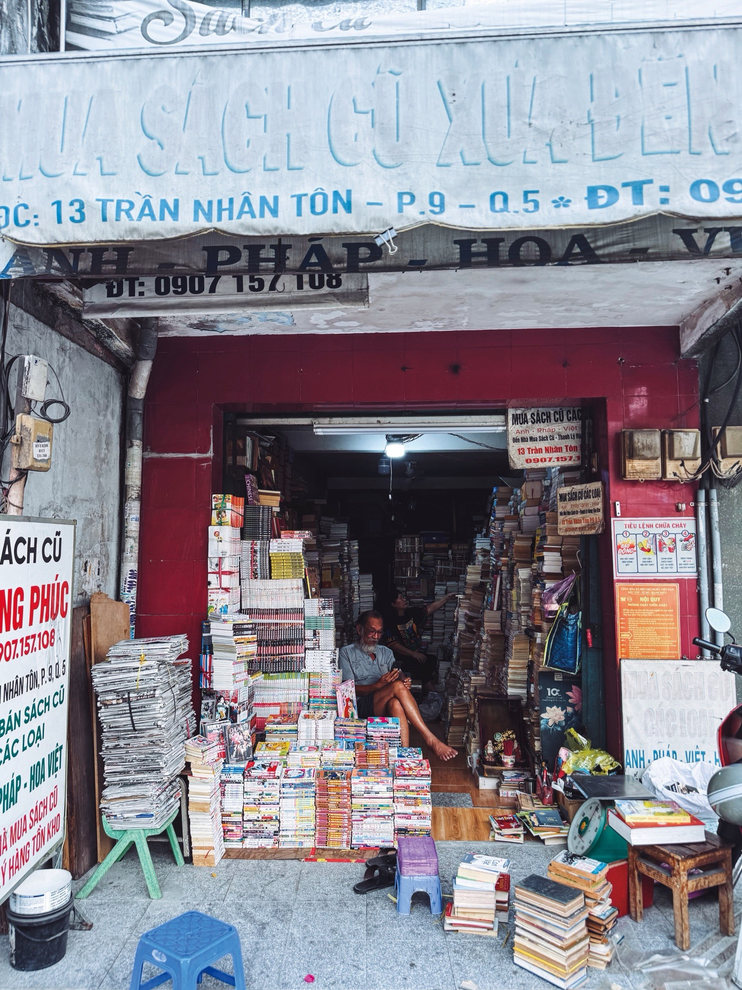 Located in District 5, Tran Nhan Ton “book street” is a hub for second-hand, rare and specialist books, gathered within a compact urban stretch. The shops are carved into concrete buildings, with dense layers of shelves that invite slow browsing. As visitors move from store to store, a gentle rhythm of discovery emerges. More than a retail destination, the street suggests that culture is sustained through everyday acts of preservation and repetition.