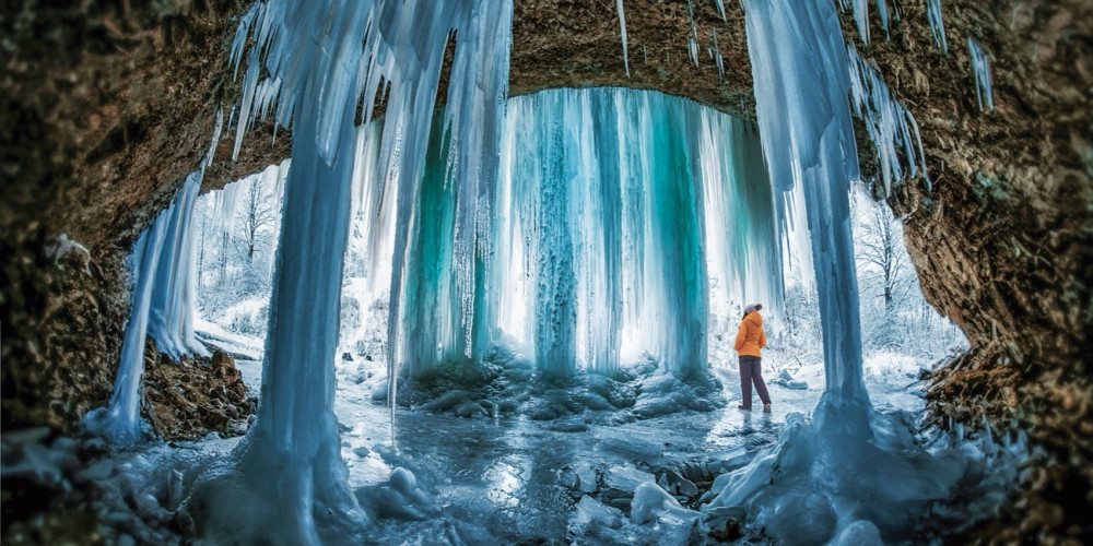 Winter is able to create unique natural phenomena and bring extraordinary experiences. If walking into the underbelly of an icefall sound like fun, then head to the town of Spišská Nová Ves in eastern Slovakia. The waterfall at Šikľavá skala Rock is 40m high and approximately 400m wide. During the winter, its water freezes, creating a fascinating natural attraction — a gorgeous veil of ice. You can admire the massive ice walls here as well as the beautiful icefalls and gigantic icicles.