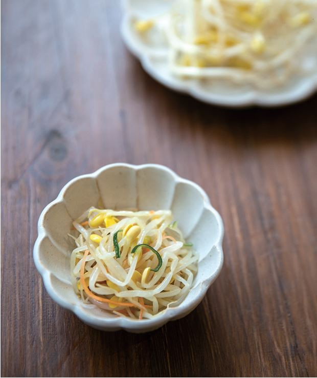 돌아보면 콩나물은 콩만 있으면 쉬이 얻을 수 있는 자원이다. 잘 여문 콩을 물에 불렸다, 물 잘 빠지는 어떤 용기에나 담아, 그늘에서 매일 물을 주며 기다리면, 닷새 늦어도 열흘 안에, 먹을 수 있을 만큼 자란다. 대두가 발아하면서 콩나물 조직이 팽팽하게 살아난다. 부드러운 식감의 숙주와 달리, 속은 수분을 머금어 촉촉하면서도 아삭하고 탄력 있는 식감을 지니게 되는 것이다.