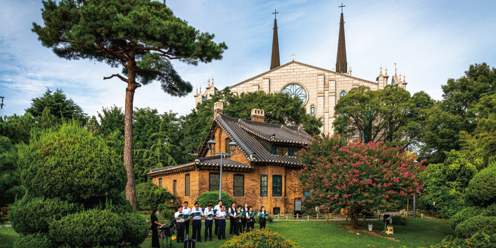 성당 안으로 들어서면 단정하고 숭고한 분위기가 공간을 엄숙히 감싼다. 햇빛이 스테인드글라스를 통과해 바닥이 색색의 빛으로 물들면 마치 시간이 느릿하게 흐르는 듯한 착각을 불러일으킨다. 은은하게 번지는 빛은 이곳이 품어온 오랜 세월과 그 안에 깃든 수많은 이야기를 조용히 들려주는 듯하다. 1919년 3·1운동 당시 계성학교와 신명여자중학교 학생들이 이 성당 앞에 모여 만세 시위를 벌였고 이후 이 일대는 대구 항일운동의 거점으로 기억되고 있다.