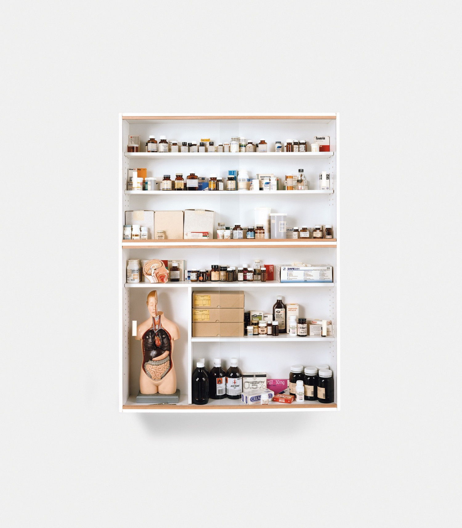 이번 전시에는 데이미언 허스트의 초기작들이 대거 등장하고 있다는 점이 관전 포인트 중 하나다. 허스트는 현대인이 매일 복용하며 의지하는 약이야말로 현대사회를 상징하는 물건이라고 봤다. 그는 연로한 어머니가 병원에서 받아온 약을 마치 신앙처럼 믿고 복용하는 모습을 보며, 현대인에게 과학과 의학이 종교와 같은 역할을 한다는 생각을 하게 됐다고 말한다. 약은 우리를 살리기도 하지만, 동시에 우리를 죽음으로부터 완전히 구해주지는 못한다는 점에서 또 하나의 믿음에 가깝다. 허스트의 알약과 약장 작품은 이러한 믿음과 질서 그리고 유한한 삶을 통제하려는 인간의 욕망을 시각화한 작업이라고 할 수 있다.