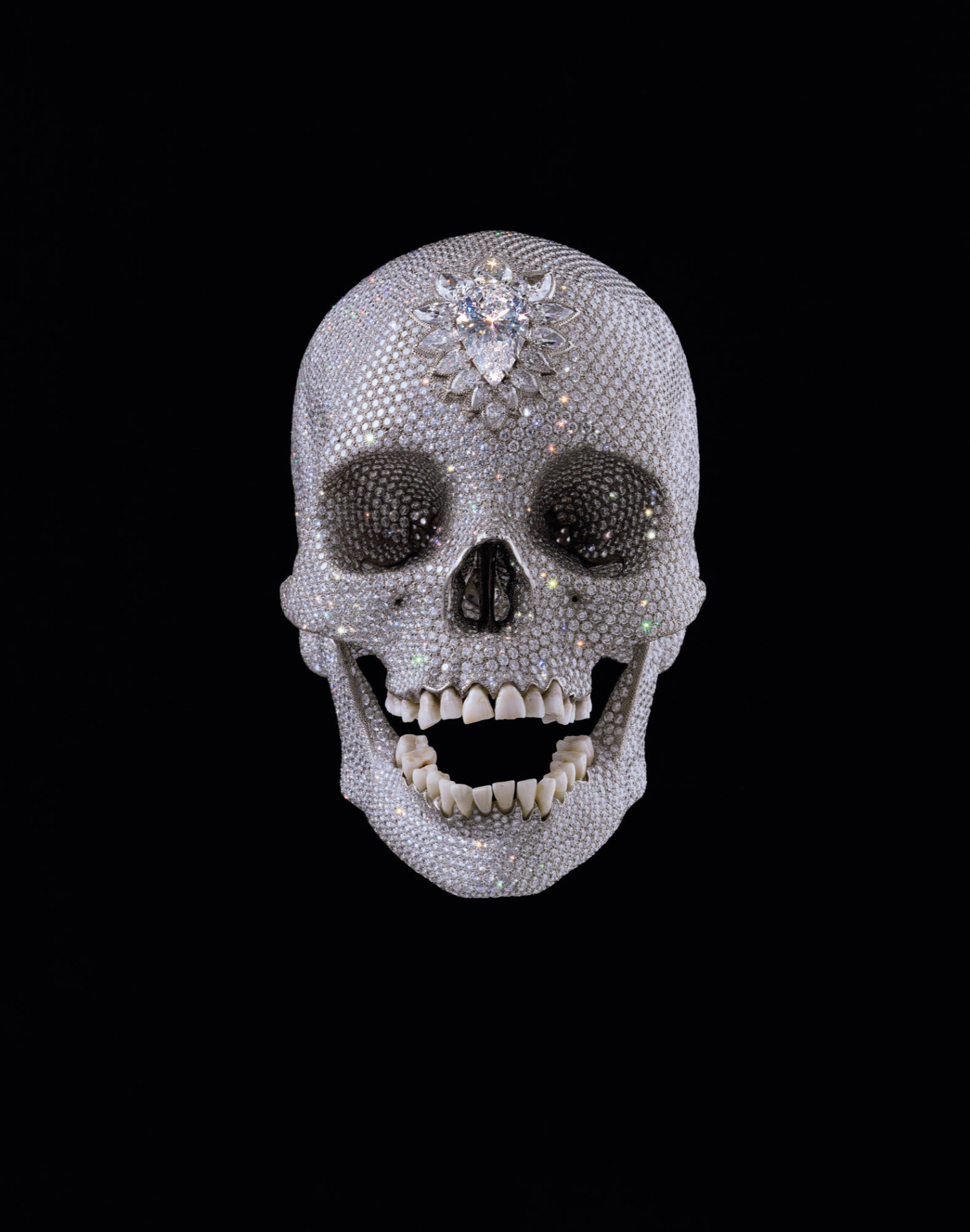 2007년 작품 〈신의 사랑을 위하여〉는 인간의 해골 형태 위에 8601개의 다이아몬드를 세팅한 작품이다. 이 작업은 17세기 네덜란드 바니타스 회화 전통과 연결되는데, 바니타스는 해골, 시든 꽃, 모래시계, 보석 등을 통해 인간 삶의 덧없음과 시간의 흐름을 이야기하던 회화 장르였다. 데이미언 허스트는 이 전통적인 주제를 현대적으로 변형해, 영원히 사라지지 않을 것처럼 빛나는 다이아몬드와 유한한 인간의 삶을 상징하는 해골을 함께 놓는다. 그리고 가장 화려하고 완벽해 보이는 것들도 결국 시간 앞에서는 영원할 수 없다고 말한다.