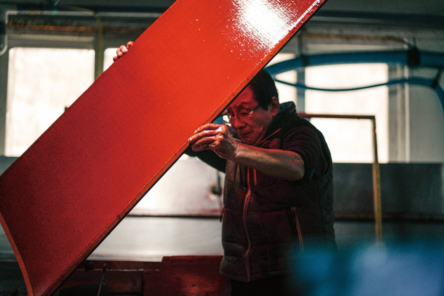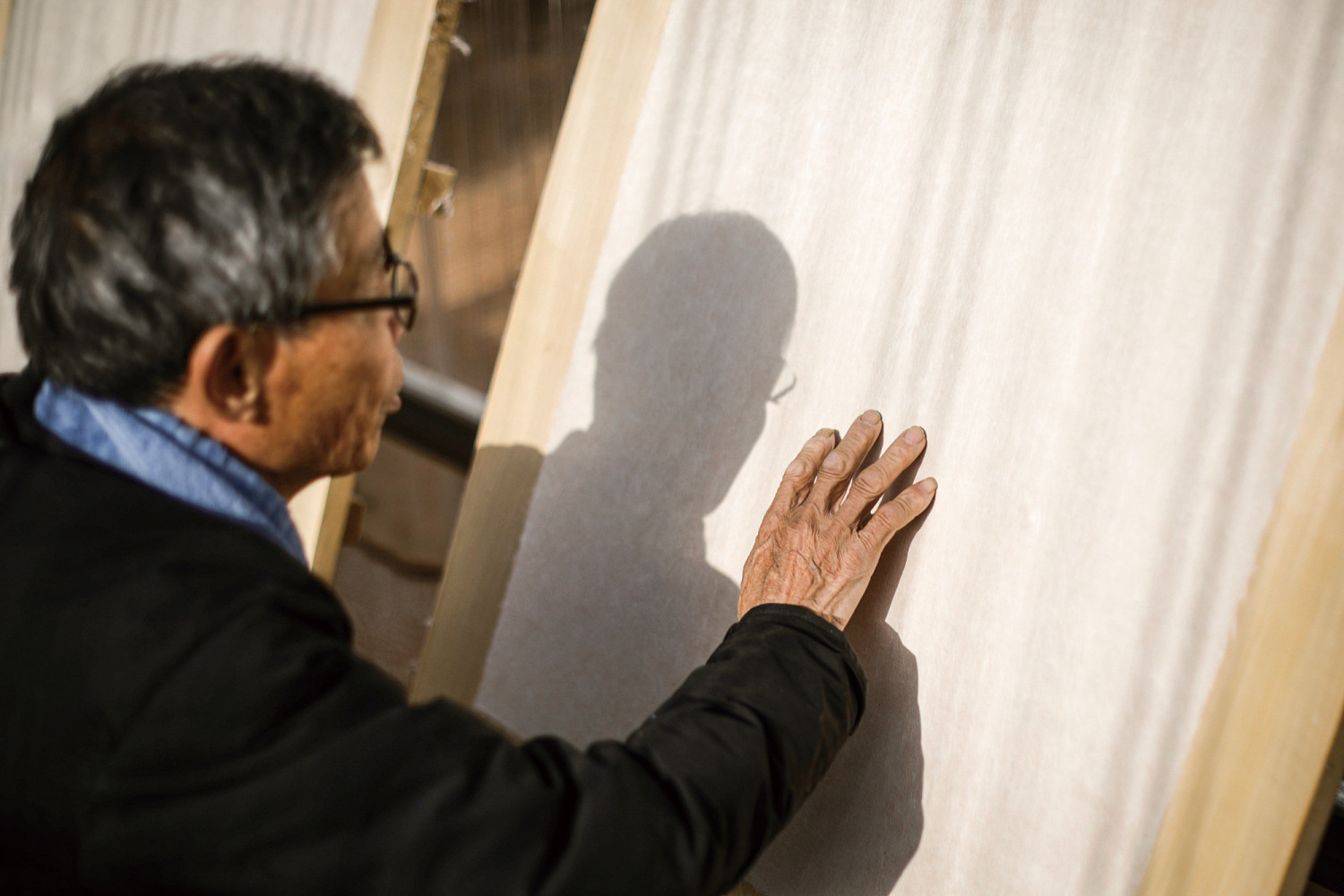 이 과정에서 섬유는 무방향으로 치밀하게 얽히며, 어느 방향으로도 쉽게 찢어지지 않는 강한 탄성을 갖게 된다. 물의 흐름과 장인의 호흡이 일치해야만 도달할 수 있는 이 기법은 그 자체로 하나의 무형 예술이다. 이렇게 탄생한 한지는 은은한 거칠기를 통해 재료가 살아 있음을 느끼게 한다. 빛을 부드럽게 투과시키는 온기, 눈에 보이지 않는 무수한 기공(氣孔)을 통해 환기와 습도 조절을 스스로 수행하는 ‘숨 쉬는 종이’의 본성은 한지가 단순한 사물이 아닌 살아 있는 재료로 인색하게 한다.